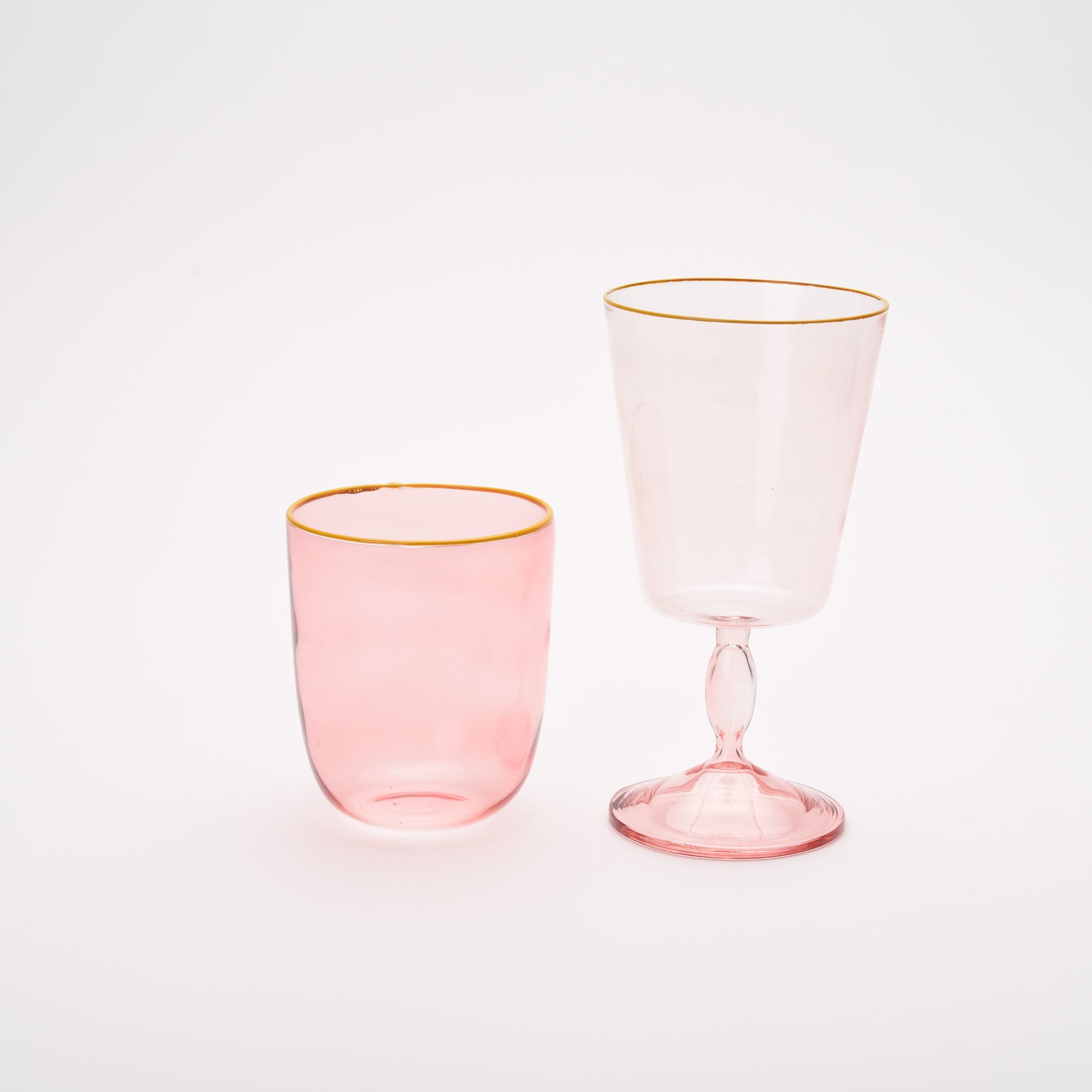Add a splash of joy to any table with this set of six handmade borosilicate colored glasses. Each one is unique, with charming colored rim. Perfect for water, juice—or whatever you’re pouring!