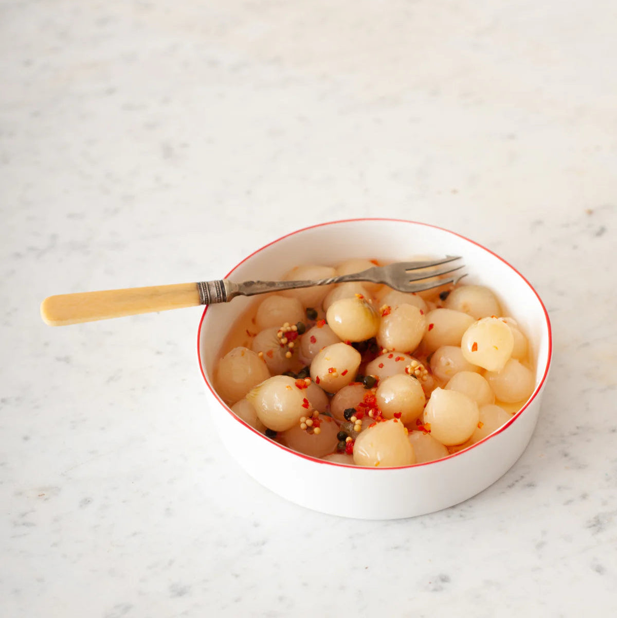 The nesting bowls are available in three sizes, each designed to complement the others beautifully on the table. Their high sides make them ideal for dips, olives, breads, and butters, and they nest neatly together when not in use.